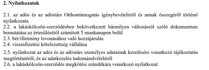 - Amennyiben az önerő célú Otthontámogatás igénybevétele esetén a szerződés a nyilatkozattól számított 180 napon belül nem jön létre, az Otthontámogatásra jogosult az Otthontámogatás folyósított összegét köteles visszafizetni a munkáltatónak (itt nem egyértelmű, hogy adásvételi szerződésről vagy hitelszerződésről van-e szó – a szerk.).