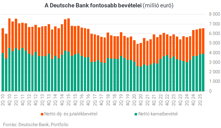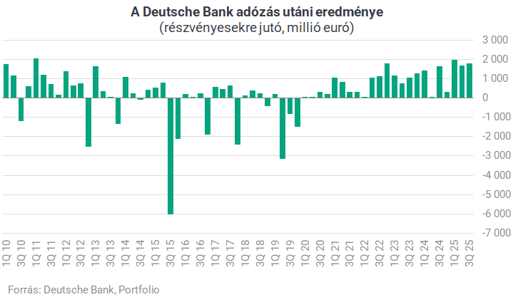A Deutsche Bank szerdán reggel 7,7 milliárd eurós adózás előtti eredményt jelentett be 2025 első kilenc hónapjára vonatkozóan, ami 64%-os növekedést jelent 2024 első kilenc hónapjához képest. A Postbank felvásárlásához kapcsolódó peres ügyekre képzett céltartalék hatásaitól mindkét időszakban megtisztítva az adózás előtti eredmény 36%-kal nőtt az előző évhez képest. Csak a harmadik negyedévében rekordösszegű, 2,4 milliárd eurós adózás előtti eredményt ért el a bank, amely 8%-kal magasabb az előző év azonos időszakához képest; és 34%-kal magasabb, ha a bázisidőszakban a Postbank peres ügyeire képzett céltartalék felszabadításával korrigálunk.