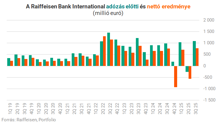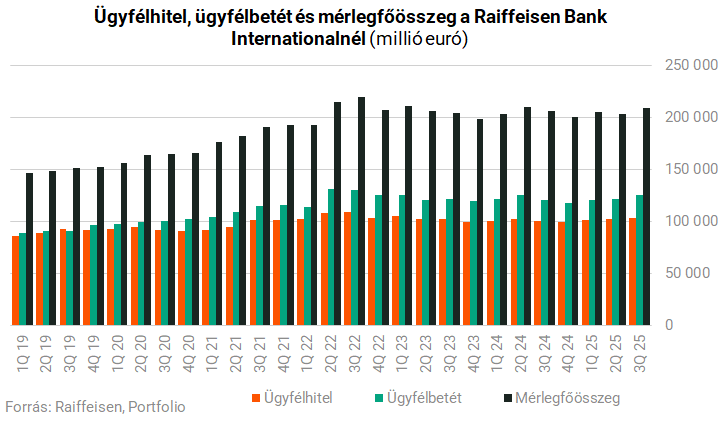 A bankcsoport CET1-aránya Oroszország nélkül 15,7 százalék volt 2025 harmadik negyedévének végén, ezt a mutatót egy olyan legrosszabb forgatókönyv alapján számítja ki a társaság, amelyben a Raiffeisenbankot ki kell vonnia a konszolidációból Oroszországot, és eközben elveszíti a teljes ottani saját tőkéjét.
