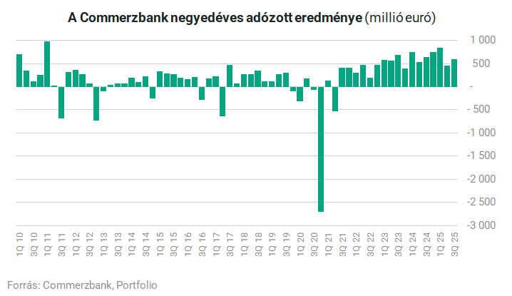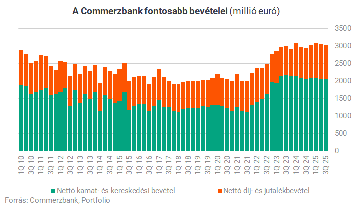 A Commerzbank bevételei az év eddig eltelt részében 11%-kal 9 milliárd euróra nőttek, míg a 3. negyedévben 7%-os növekedés 2,9 milliárd euróra, ezen belül