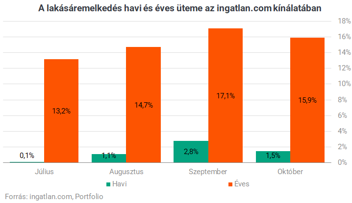 Az októberi lakásdrágulás azonban még mindig magasabb volt az augusztusinál is,