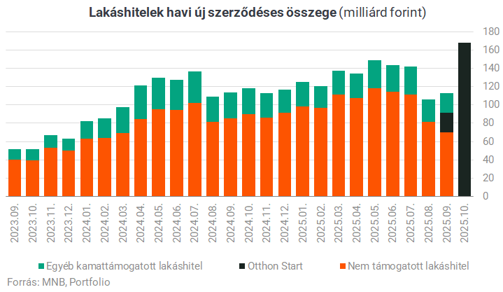 Az MNB szerint szeptemberben még csak 21,7 milliárd, a Portfolio értesülése szerint októberben viszont már közel 170 milliárd forintnyi Otthon Start-szerződést kötöttek