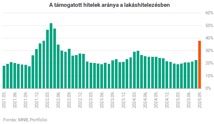 a kamattámogatott hitelek aránya 38%-ra emelkedjen az új lakáshitelek összegén belül.