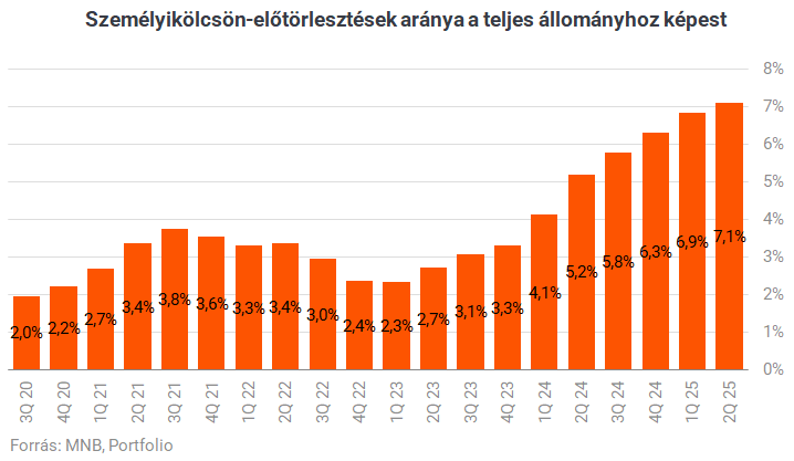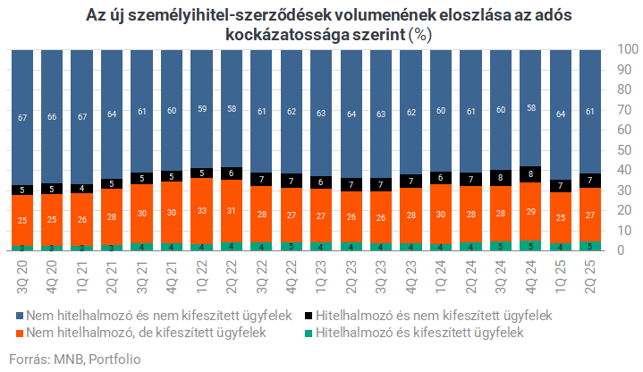 Ugyanakkor az MNB is megjegyzi, hogy a hitelintézeti személyihitel-állomány 18 százalékos éves növekedési üteme magasabb, mint a teljes lakossági hitelállományé, így a