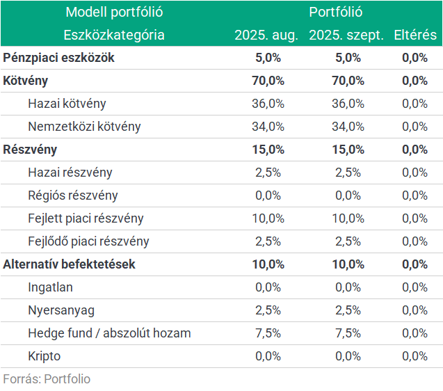 Azonban akadhatnak problémák is. Például utólag kiderülhet, hogy a Fed túl későn kezdte el a kamatok csökkentését, ami azt jelentené, hogy a munkaerőpiac hirtelen lehűl és recessziót vált ki. Vagy a Trump-kormányzat vámemelésének a növekedést fékező hatásai a közeljövőben válhatnak nyilvánvalóvá. Az is előfordulhat, hogy a Fed jelenlegi érvelése megingatható: ha az a nézet válik uralkodóvá, hogy a kamatokat elsősorban a hatalmas politikai nyomás miatt csökkentik, a hosszú távú inflációs várakozások emelkedhetnek, ami rendkívül negatív fejleményeket indíthat be a kötvénypiacokon. Az ajánlott portfólióban egyelőre nem változtattunk, a kötvénypiacokon inkább Európát preferáljuk, a részvények súlyát semleges szinten tartjuk."