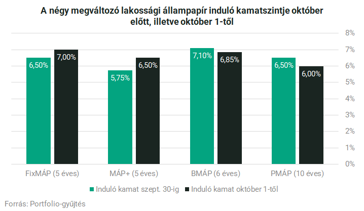 Látható, hogy a legnagyobb induló kamatot mostantól a Fix Magyar Állampapír biztosítja (évi 7%), a BMÁP induló kamata a második helyre csúszik vissza (6,85%), ezt a MÁP Plusz induló kamata követi (6,5%), végül a PMÁP 6%-os kamatozással a negyedik helyet szerezte meg a megújuló papírok rangsorában.