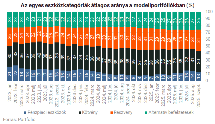 ezzel több mint három éve nem látott fordulat történt a portfólióban: 2022 májusa óta most először ismét a részvények büszkélkedhetnek a legnagyobb súllyal a portfólión belül.