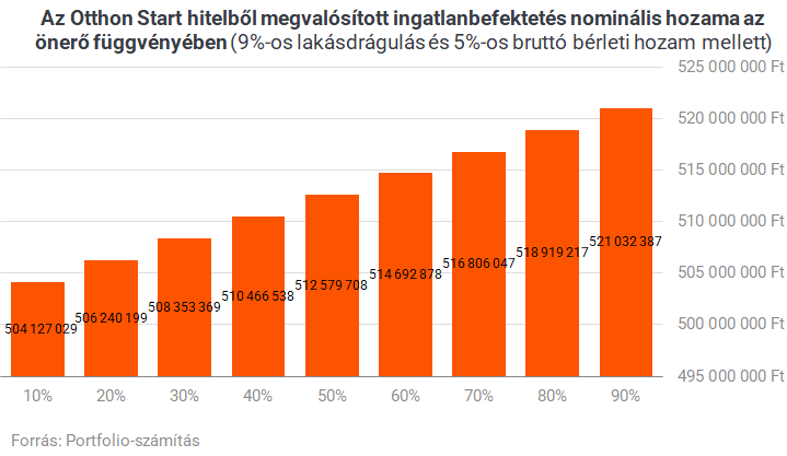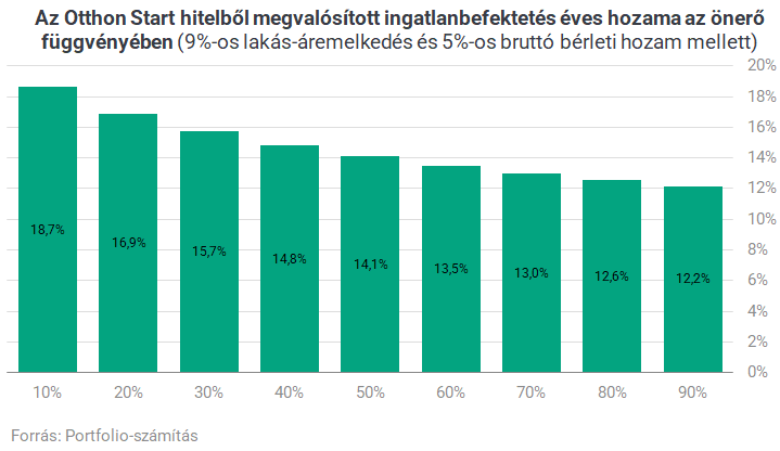 az Otthon Startból megvalósított ingatlanbefektetés hozama sokkal érzékenyebb az elérhető bérleti díj és a várható lakásár-változás, mint az önerő mértékére,