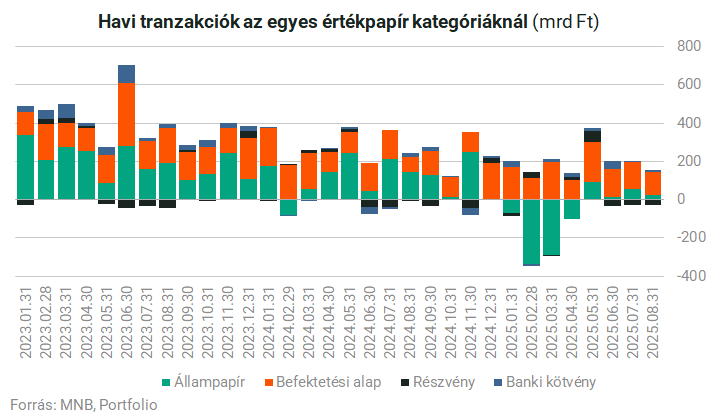 augusztusban 113 milliárdos állománynövekedést könyvelhettek el, ezért teljes egészében a tranzakciók feleltek, míg a hozamok hatása eNyHén negatív volt.