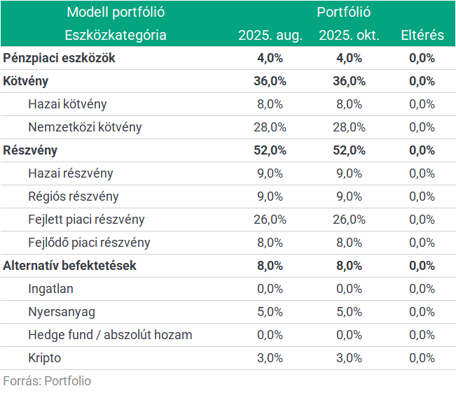 A fentiek és az általában erősebb év végi időszak miatt továbbra is tartjuk a portfóliónk kockázatvállaló, részvénytúlsúlyos összetételét."