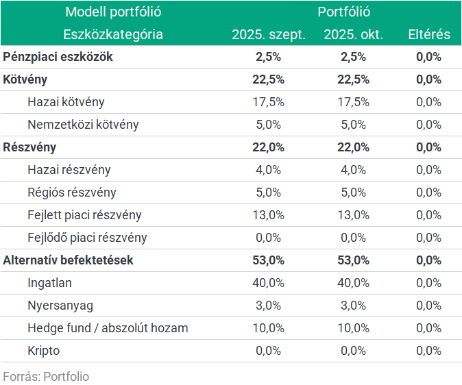 A hónap történései egyelőre nem indokolják, hogy változtassunk az eszközallokáción a korábbi portfólió-ajánlónkhoz képest."