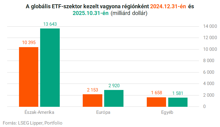 Európa eközben valamelyest képes volt felzárkózni, az öreg kontinens kezelt vagyona az év első tíz hónapjában több mint 35%-kal, 2920 milliárd dollárra bővült,