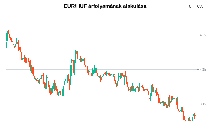 Ebből persze még nem következik, hogy érdemben gyengülnie kellene a forintnak. Rövidtávon úgy tűnik, hogy a már említett 390 lehet egy komolyabb teszt a magyar devizának, ha meg tudna ragadni alatta, akkor nyílhatna tér akár további erősödésre. Egyelőre azonban inkább csak kerülgeti ezt a kulcsszintet az árfolyam.