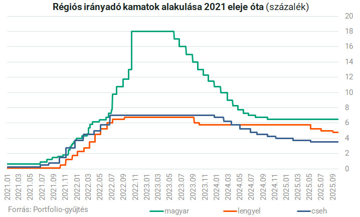 Az egyértelműen látszik, hogy miközben itthon a Monetáris Tanács folyamatosan a türelmet és az óvatos hozzáállást hangsúlyozza, nemhogy csökkenne, hanem emelkedik a magyar kamatfelár. A fejlett jegybankok közül ugyanis az EKB az év eleje óta már 100 bázisponttal csökkentette a kamatszintet, a Fed épp szeptemberben indította újra lazítási ciklusát, míg a régióban a lengyel jegybank 100 bázisponttal, a cseh pedig 50 bázisponttal vágta lejjebb a kamatot.