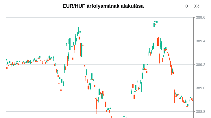 Csütörtök reggel a forint az euróval szemben 389-es szinten indította a napot.