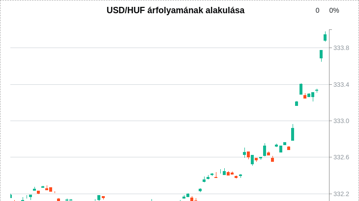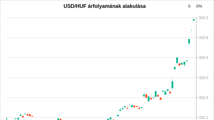 A dollár már 4 egységet erősödött a forinttal szemben, árfolyama 336-nál is járt. Utoljára szeptember 26-án volt ilyen gyenge a forint a dollárhoz viszonyítva.