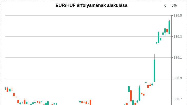 A forint jelentősen, 3,5 egységet vesztett értékéből az euróval szemben, amivel árfolyama egészen 392,3-ig emelkedett. A magyar deviza mintegy másfél hete nem volt ilyen gyenge az euróhoz viszonyítva.
