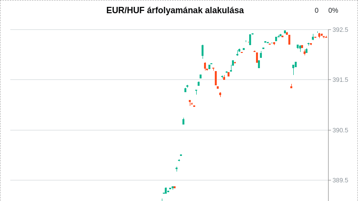 Az euró 4,3 egységet (1,1 százalék) erősödött a forinttal szemben ma, az árfolyama átvitte a 393-as szintet.