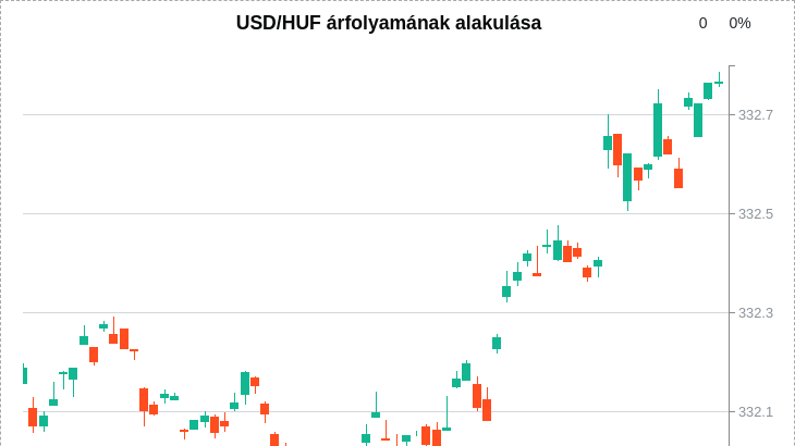 A dollár már 4 egységet erősödött a forinttal szemben, árfolyama 336-nál is járt. Utoljára szeptember 26-án volt ilyen gyenge a forint a dollárhoz viszonyítva.