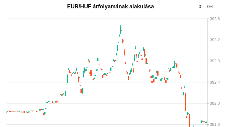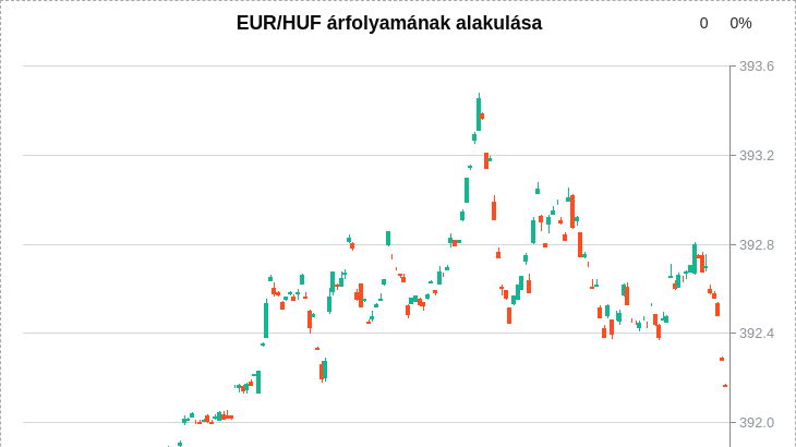 Az elmúlt percekben 393,4 közelében is járt a forint az euróval szemben.