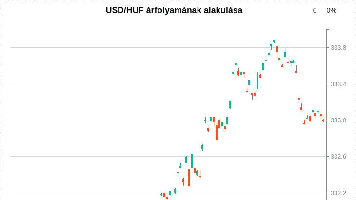 A kormány 5%-ra emelte a jövő évi hiánycélt, a forint kismértékben gyengül a hírre. Jelenleg 332,4-nél az árfolyam.