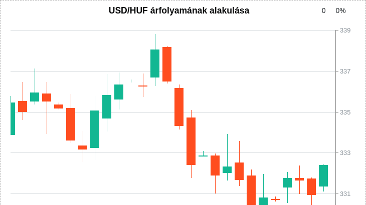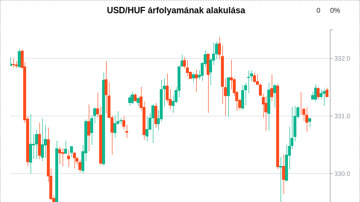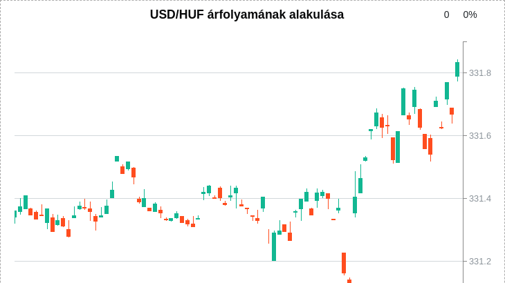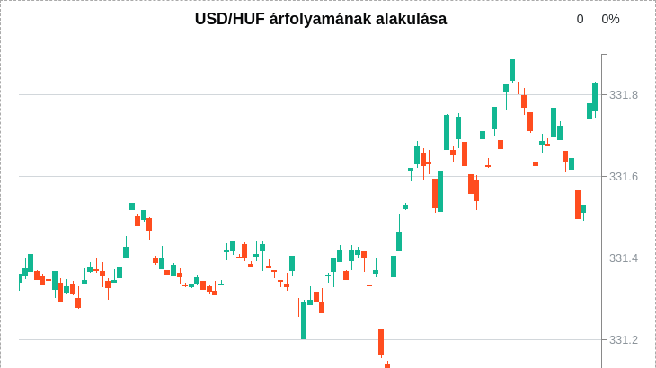 A dollárhoz képest is gyengülés látszik a kurzusban: 331-ról már 331,75-ig kúszott fel.