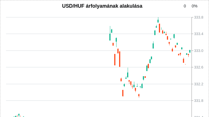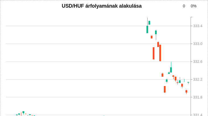 A dollár árfolyama szintén felfelé kapaszkodik, a jegyzés mostanra a 333-as szintet közelíti (332,9).