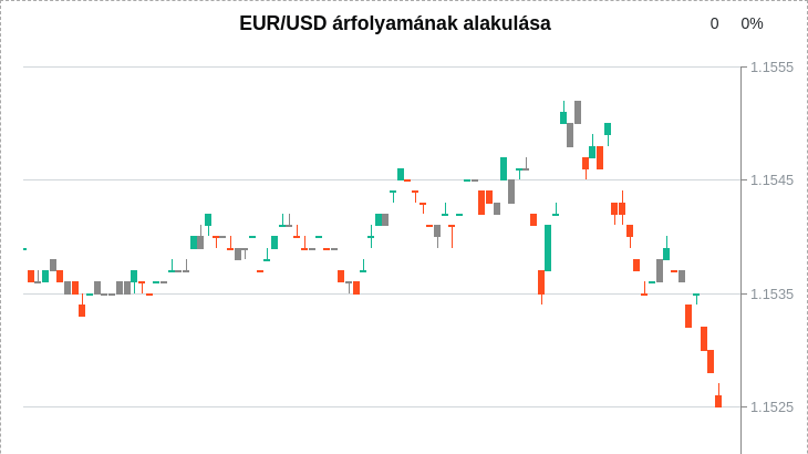 A délelőtti órákban az euró is gyengülni kezdett a dollárral szemben, a közös európai fizetőeszköz jegyzése a reggeli 1,155-ös szintről 1,151-ig csökkent.