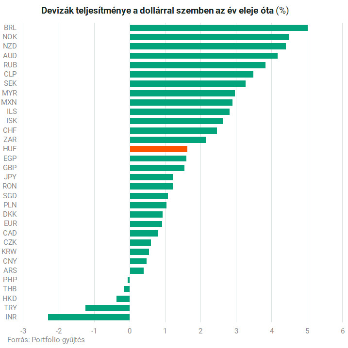 a lengyel, a cseh és a román devizát is felülteljesítette.