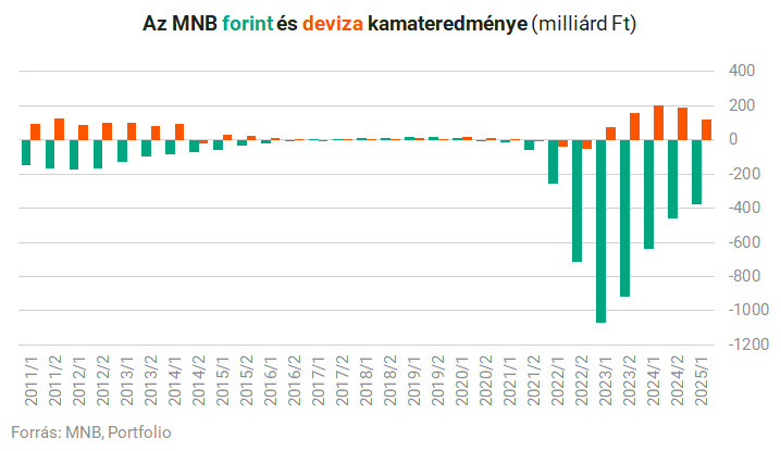 Az eredmény részletezéséből az látszik, hogy a kamateredmény az egy évvel korábbihoz képest jelentősen javult, de a 257,4 milliárd forintos mínusz lényegében megegyezett a tavalyi második félév adatával. Ennek hátterében az állhat, hogy 2024 szeptemberében érte el a ma is érvényes 6,5%-os szintet az alapkamat, azóta nem sikerült csökkenteni, vagyis a tavalyi első félévben még magasabb kamattal működött az MNB. Ugyanakkor azt is érdemes hozzátenni, hogy éppen a magas kamat tartja stabilan, illetve erősödő pályán a forintot.