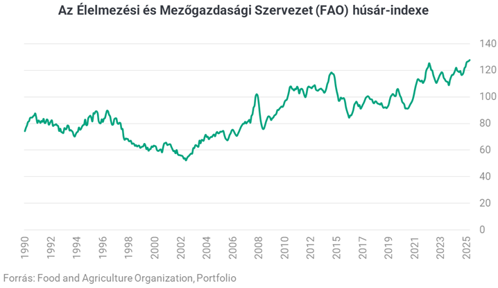 Az ENSZ Élelmezésügyi és Mezőgazdasági Szervezetének (FAO) pénteki jelentése szerint a globális húsárakat követő index 0,7%-kal emelkedett szeptemberben, ami a nyolcadik egymást követő havi növekedést jelenti.