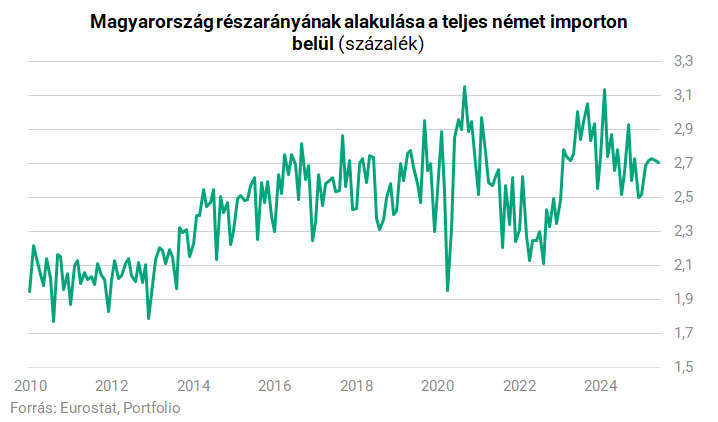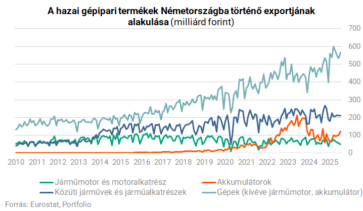 Ezen termékkör teljes kivitelhez viszonyított részaránya 2024-ben 32,6 százalék volt, miközben a többi feldolgozóipari termék további 40,7 százalékot tett ki. A kapcsolat fordított irányban is erős: tavaly a hazai termékexport 25 százaléka Németországba irányult, miközben ugyanez az arány autóipari termékek esetén majdnem 30, míg akkumulátoroknál 47 százalék volt.