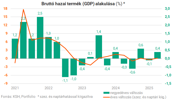 A magyar gazdaság koronavírus-járvány utáni teljesítményén látszik, hogy a növekedést az elmúlt években a lakossági fogyasztás hajtotta, melynek hatását viszont általában ellensúlyozta beruházások zuhanása. A hazai gazdaságot 2022 végéig az export felfutása is támogatta, ekkor azonban csökkenni kezdett a külkereskedelem forgalma, amely az elmúlt két és fél évben már fékezte a hazai gazdaságot. Bár a GDP felhasználási oldalát bemutató ábrán az látszik, hogy a nettó export 2023-ban is jelentősen hozzájárult a gazdaság növekedéséhez, ez nem az export erősödésének, hanem főként az elmaradó beruházások miatt bezuhanó importnak köszönhető.