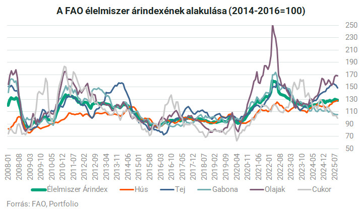 A szeptemberi adatok alapján a FAO összesített árindexe majdnem 30%-kal volt magasabb, mint a 2014-16-os évek átlaga. Ezen belül a cukor világpiaci ára még egy hajszálnyival alacsonyabb is volt, mint tíz éve, illetve átlag alatti volt a gabona 5%-os drágulása is. Közben viszont az étkezési olajfélék ára 68%-kal ugrott meg, a tej 48,3%-kal kerül többe, míg a hús világpiaci áremelkedése az átlagosnak megfelelő, 27,8%-os volt.