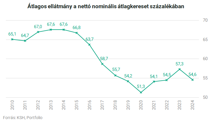 Ezzel együtt is a legfrissebb, tavalyi adat szerint az átlagos juttatás alig 54,6%-át tette ki a KSH által számított átlagbérnek.