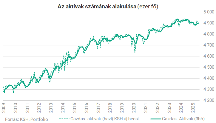 A gazdaságilag aktívak (a munkaerőpiacon megjelenők) száma szintén csak minimális elmozdulást mutat, az ingadozásokba szintén belelátható egy kis javulás az utóbbi hónapokban.