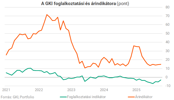 Az ár-indikátor, ami a cégek értékesítési árainak a következő három hónapban várható alakulását mutatja, augusztus és szeptember után októberben sem változott a megelőző felméréshez képest. A következő három hónapban a cégek 19%-a szeretne árat emelni, míg árcsökkentésre 8%-a készül.