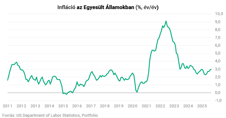 Az amerikai infláció szeptemberben a vártnál enyhébben, 3,0 százalékra emelkedett éves alapon, miközben az elemzői konszenzus 3,1 százalékot várt. A maginfláció – az élelmiszer- és energiaárak nélkül számított mutató – szintén 3,0 százalékon alakult, ami a korábbi hónapok 3,1 százalékos értékeihez képest mérsékelt lassulást jelez.
