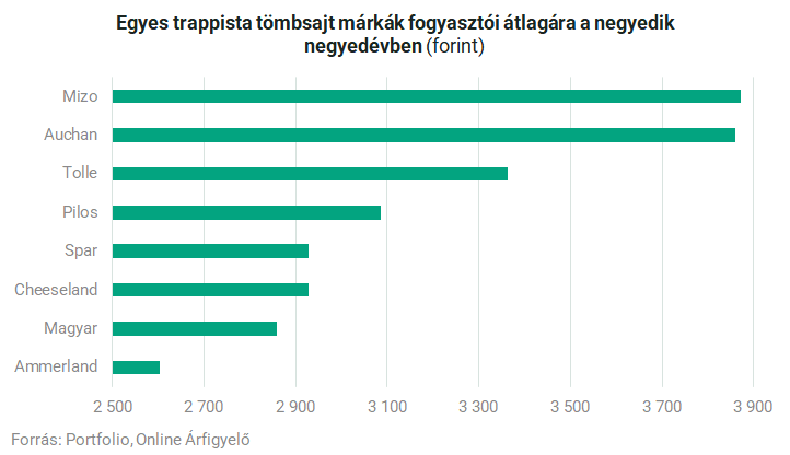 A legolcsóbb az Ammerland (2870 Ft/kg), a legdrágább a Magyar trappista (4412 Ft/kg) volt az elmúlt hetekre szűrve.