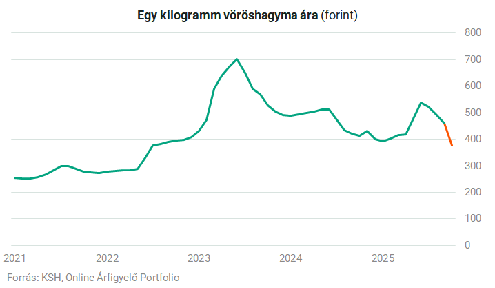 A vöröshagyma esetében szeptember–októberben zajlik a betakarítás, ilyenkor a kínálat bőséges, ezért az árak jellemzően alacsonyabbak. Novembertől januárig lassú áremelkedés figyelhető meg, mivel a tárolási és válogatási költségek beépülnek az árakba, és a jobb minőségű, nagyobb hagymák prémiumot kapnak. Február–április között az árak magas szintet érnek el: a belföldi készletek csökkennek, a tárolási veszteség nő, ami tovább hajtja felfelé az árakat. Május–júniusban gyakoriak az árcsúcsok, de ezek enyhülhetnek, amikor megjelennek az első újhagymák és a déli importból (például Spanyolországból, Olaszországból vagy Egyiptomból) érkező tételek.