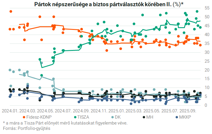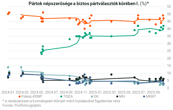 a különbség mintha még növekedne is, vagyis eddig az ősz folyamán a Tisza még erősíthette is a pozícióit, miközben a fidesz támogatottsága stabil maradt.