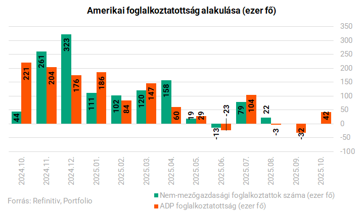 A szeptemberi 32 ezer fős csökkenés után októberben 42 ezer fővel bővült a foglalkoztatottág az ADP felmérése szerint (várakozás: 25 ezer fő).