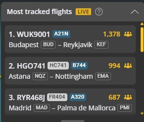 A járat egyébként a legkövetettebb jelenleg a flightradar adatai szerint: