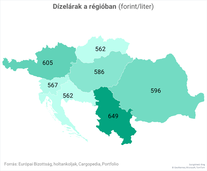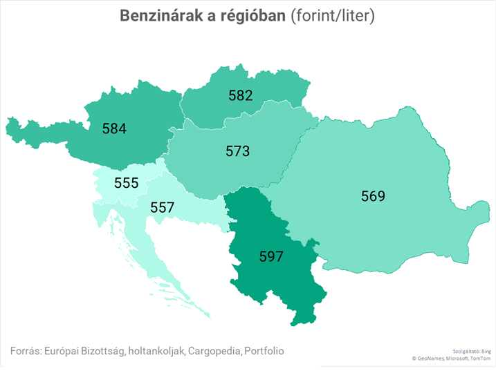 Az alábbi grafikákon térképen is látható, hogy hol drágább a benzin és a dízel a régióban, mint Magyarországon.