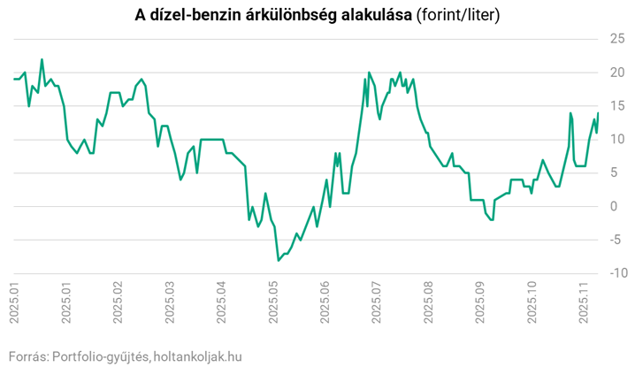 Ugyancsak a finomítói marzsok alakulásából lehet levezetni, hogy jelenleg miért jóval drágább a hazai kutakon a dízel, mint a benzin: a literenkénti 13 forintos különbség azzal magyarázható, hogy a gázolaj prémiuma október közepén valósággal kilőtt (az orosz termékek várható kiesése miatt), míg a benzin marzsa stagnál.