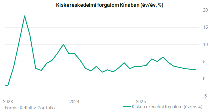 A fogyasztás azonban nem ad sok okot derűlátásra: a kiskereskedelmi forgalom októberben mindössze 2,9%-kal nőtt, és ezzel már ötödik hónapja lassul.