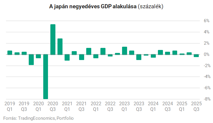 A Bloomberg Economics szerint Japán harmadik negyedéves GDP-csökkenése valószínűleg erősíti a Takaicsi-kormány érvelését a további fiskális ösztönzés mellett, és nyomást gyakorol a BOJ-ra, hogy lassítsa a politikai normalizációt