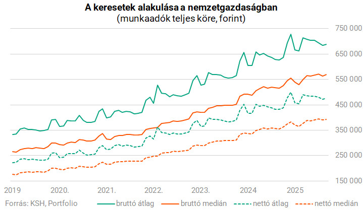 A nettó átlagkereset növekedését jelentősen befolyásolta a 2025. július 1-jétől bevezetett magasabb összegű családi adókedvezmény.