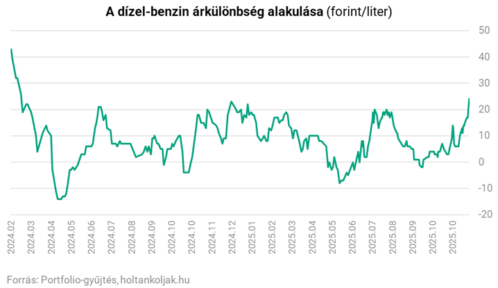 A dízel és benzin közti árkülönbség ezzel 24 forintra fog emelkedni holnaptól literenként,