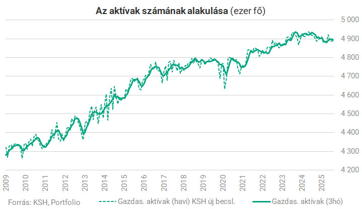 Továbbá még az inaktivitás valamelyest csökkenthető, habár ezen a téren már komoly előrelépést ért el az ország. Ahogy az alábbi ábrán látszik, az aktívak száma az elmúlt időszakban már nem igazán növekedett. Sőt, a demográfiai korlátok miatt is látható már egy kis csökkenés.